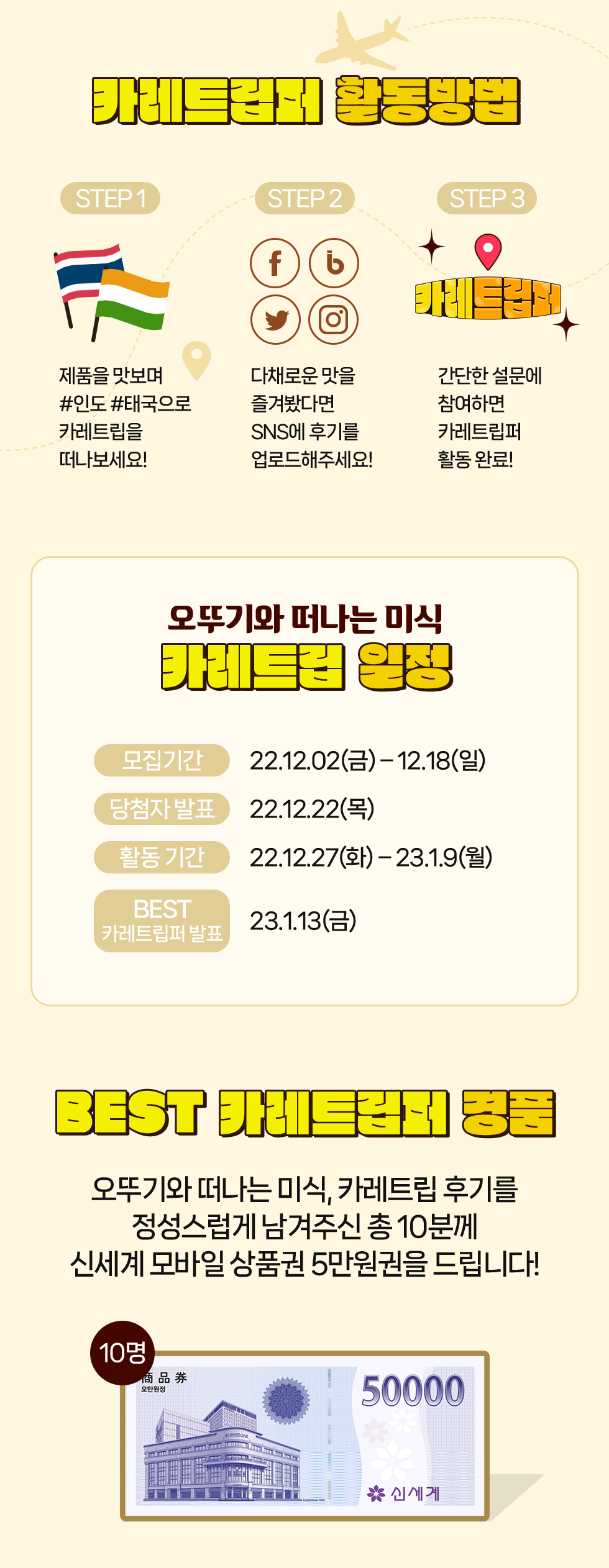 [오뚜기와 떠나는 미식, 카레트립!] 카레트립퍼 150명 모집