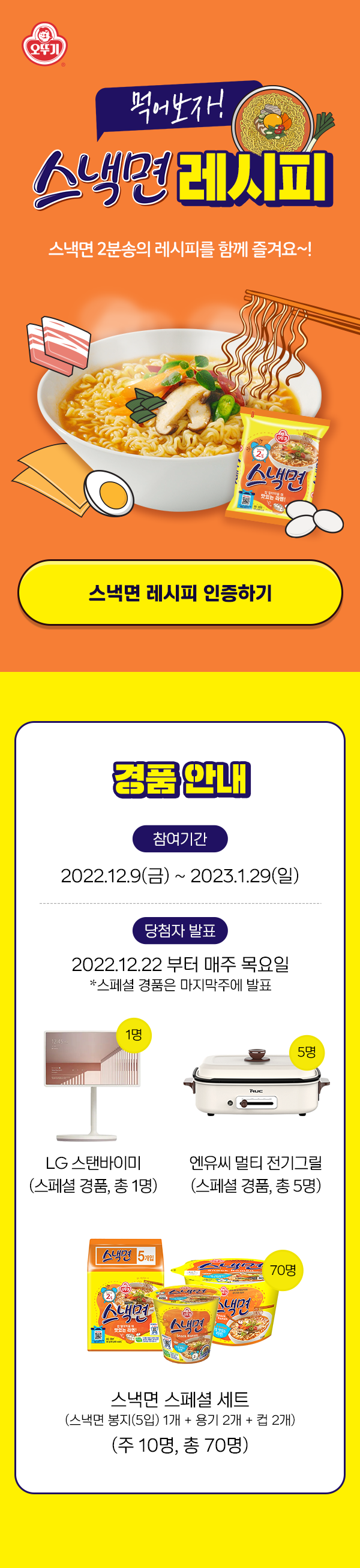 [오뚜기] 스낵면 레시피 인증하기 EVENT