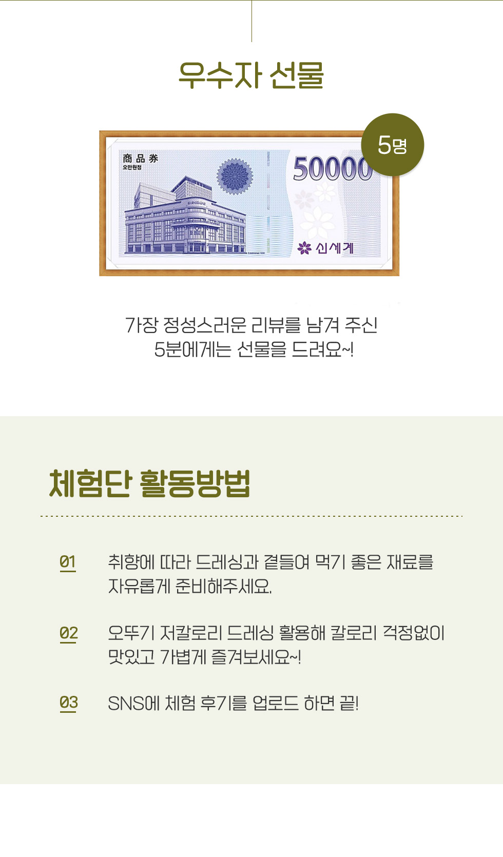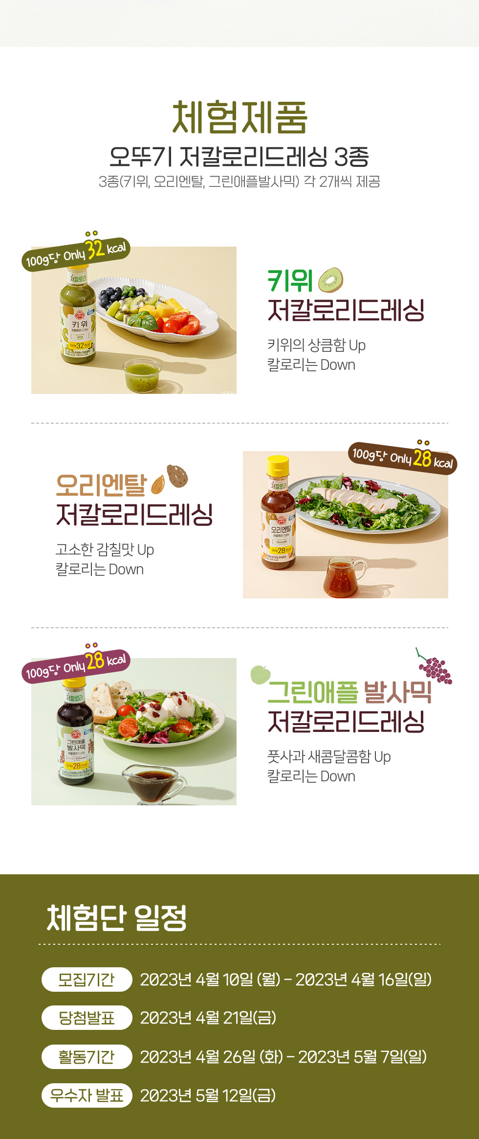 오뚜기 저칼로리 드레싱 체험단 100명 모집