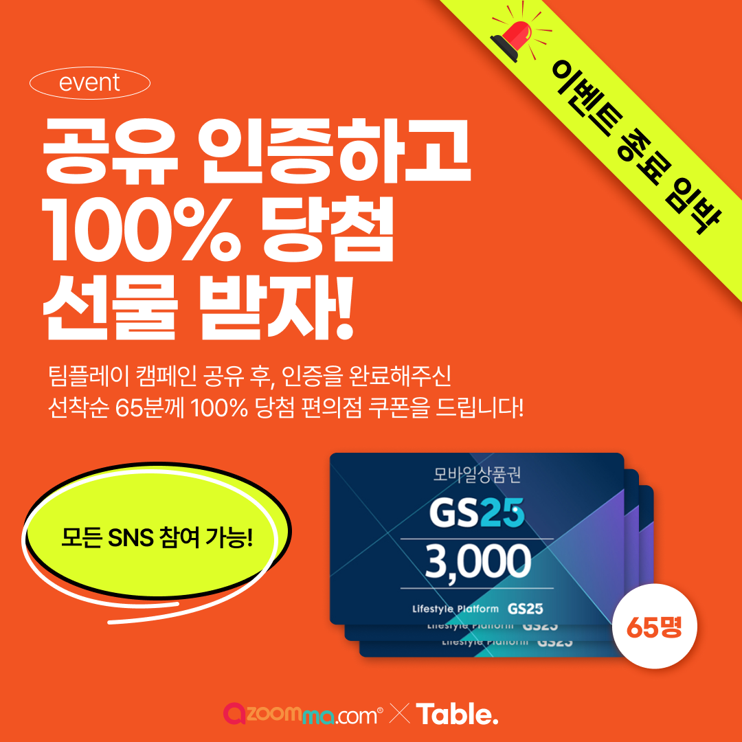 팀플레이 공유 이벤트 종료 임박을 맞아, 우먼테이블과 아줌마닷컴이 준비한 특별 이벤트!