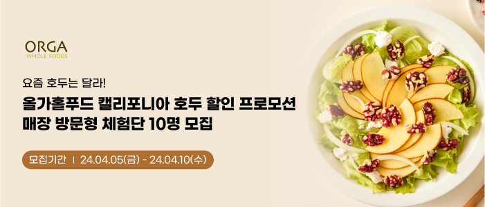 올가홀푸드 캘리포니아 호두 할인 프로모션 매장 방문형 체험단 10명 모집!
