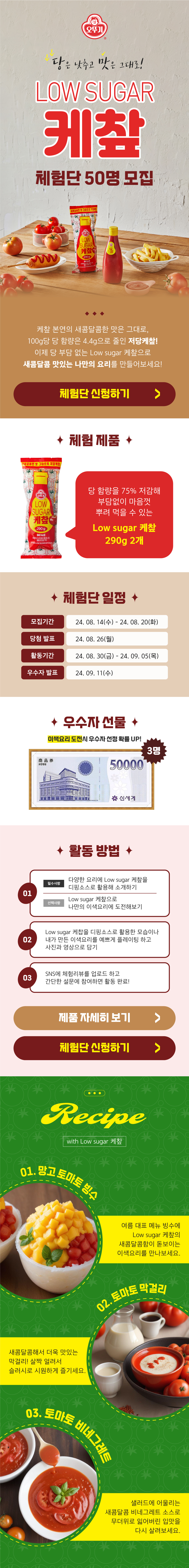 오뚜기 Low sugar 케챂 체험단 50명 모집