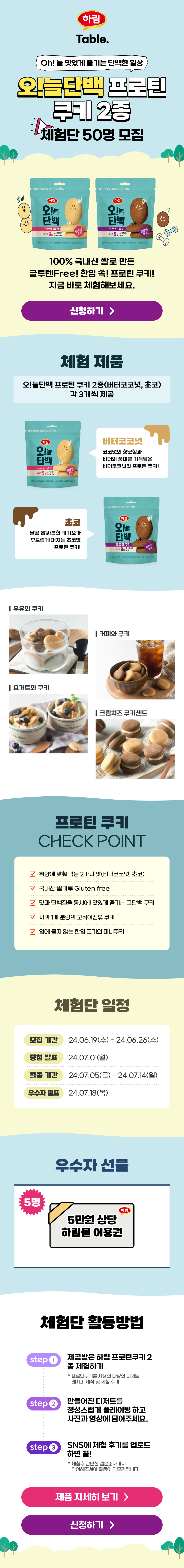 하림 오!늘단백 프로틴쿠키 2종 체험단 50명 모집